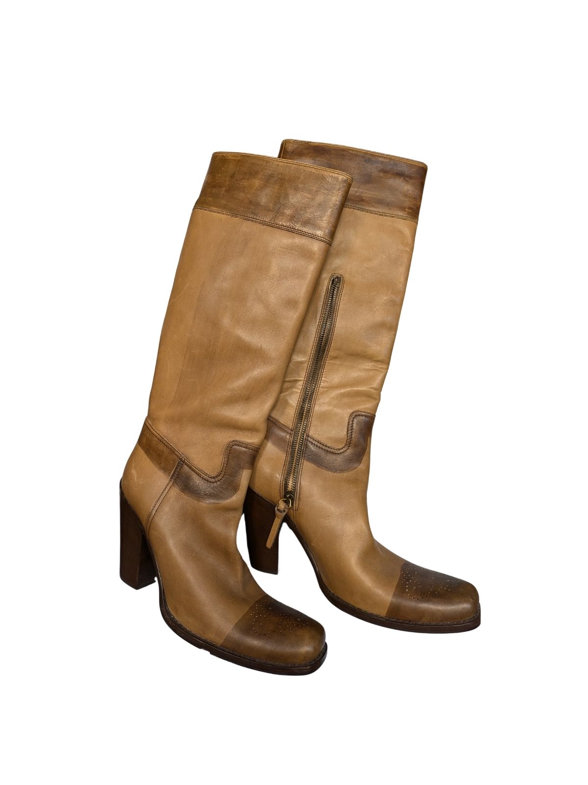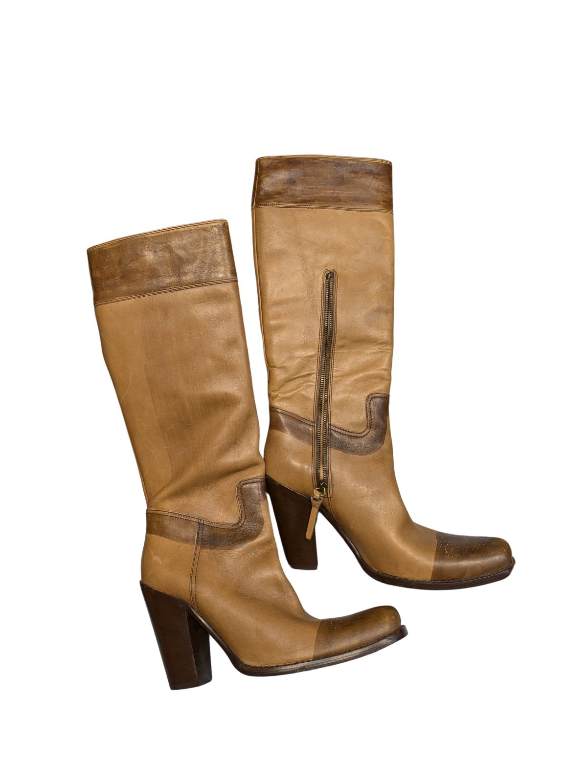 | Visoke kožne čizme na petu Boja: smeđa, bež Veličina: 40 |