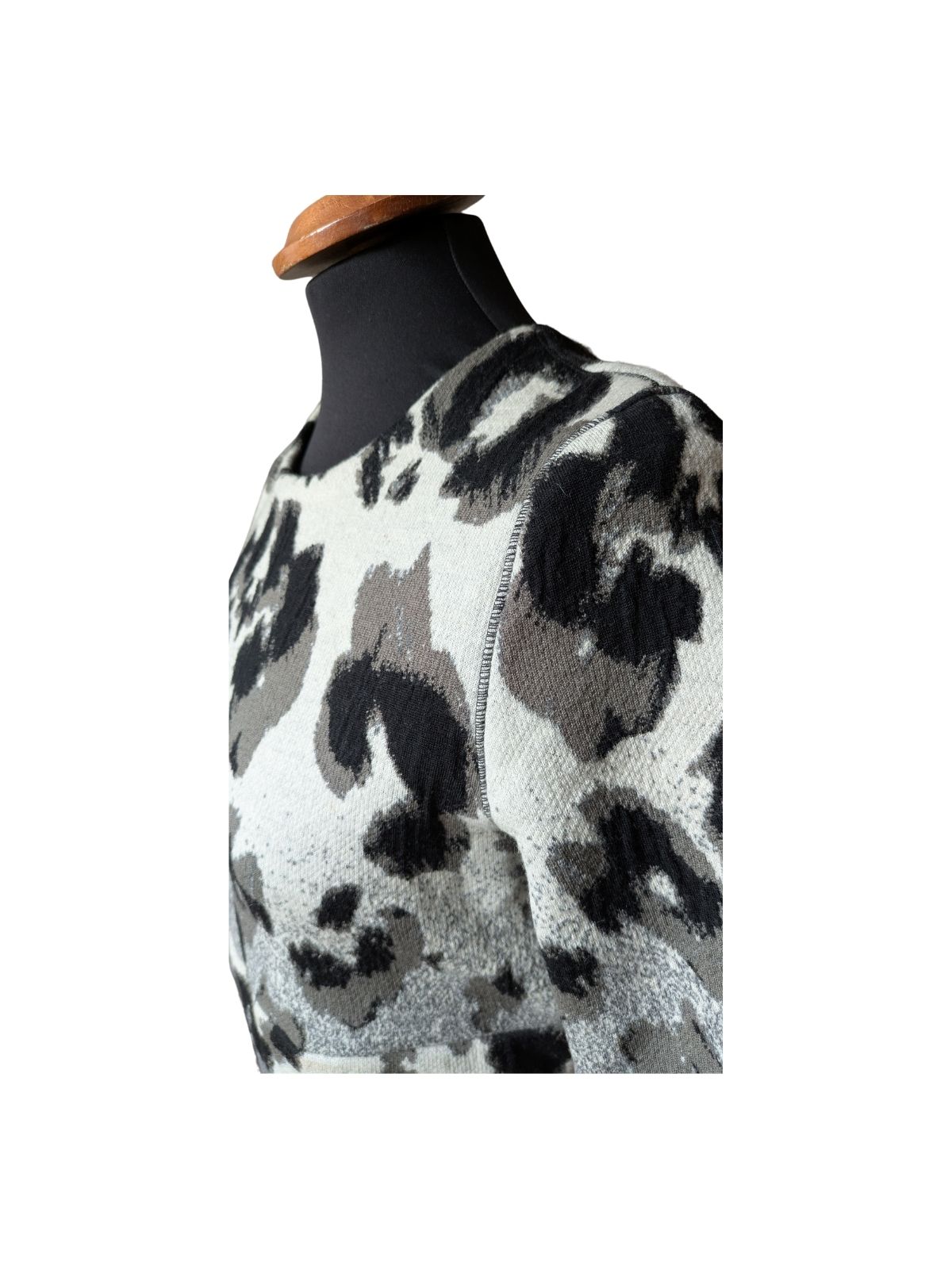 Topla i izuzetno mekana haljina životinjskog printa. Dužine do koljena, prati liniju tijela. Rijetko dobrog sastava, postat će it komad u tvom ormaru. Sastav: 90% djevičanska vuna, 8% viskoza, 2% elastin |