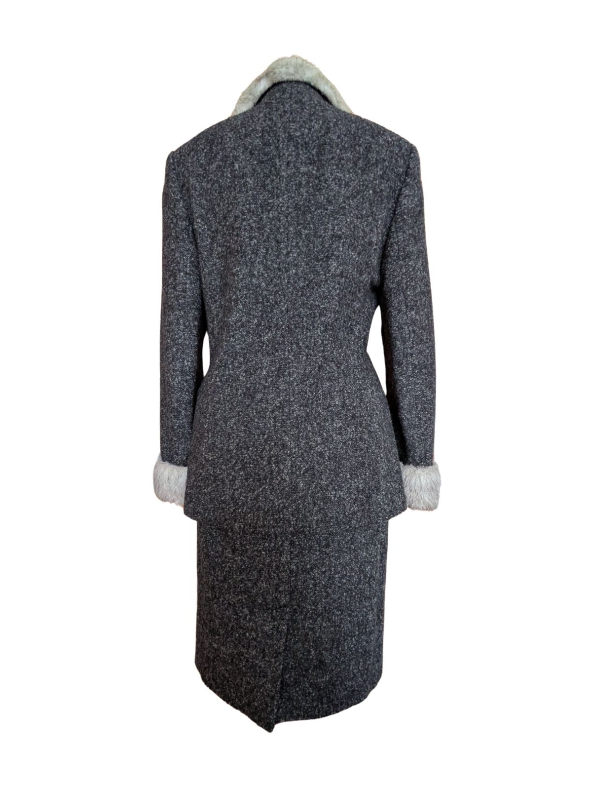 Ovaj prekrasni kaputić je original vintage komad, može se kupiti u kompletu sa vunenom suknjom, ali i odvojeno. Detalji su vunom presvučeni gumbi i umjetno krzno na rukavima i kragni. Vrlo rijetko se nađe ovakav očuvani komplet. Mekano, toplo, bezvremenski! Sastav: 85% vuna, 15% poliamid |