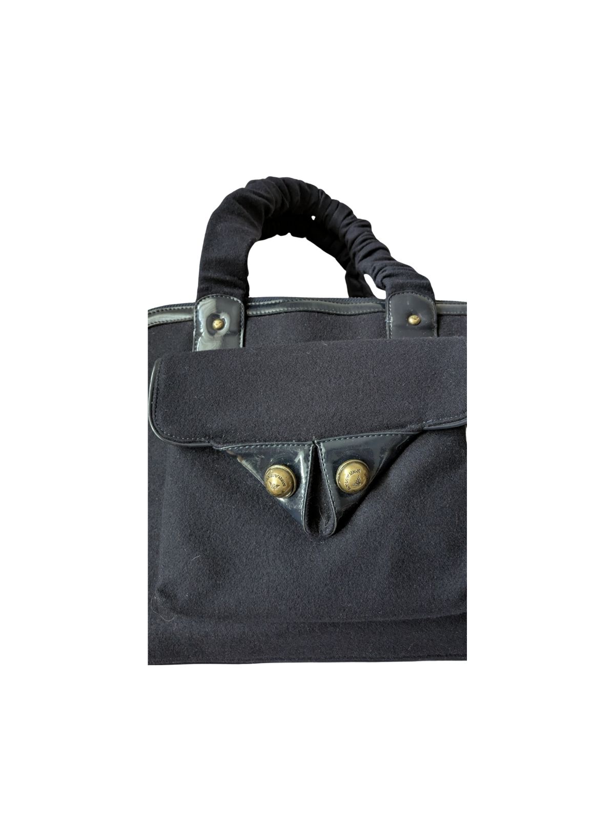 Ova torba je zajedno s ručkama presvučena toplom tkaninom, sa detaljima lak kože. Kopčanje na šlic. Sprijeda je džepić u obliku pisma koji se zatvara na magnetić. Divni detalji su brončani gumbići s Armani logom, a na zatvaraču rese (tassel). Torba za svaku prigodu, dobra investicija. Dimenzije: širina 38,1 cm, visina 27,94 cm, dubina 23,87 cm Extra: dolazi sa original torbicom za čuvanje (dust bag) |