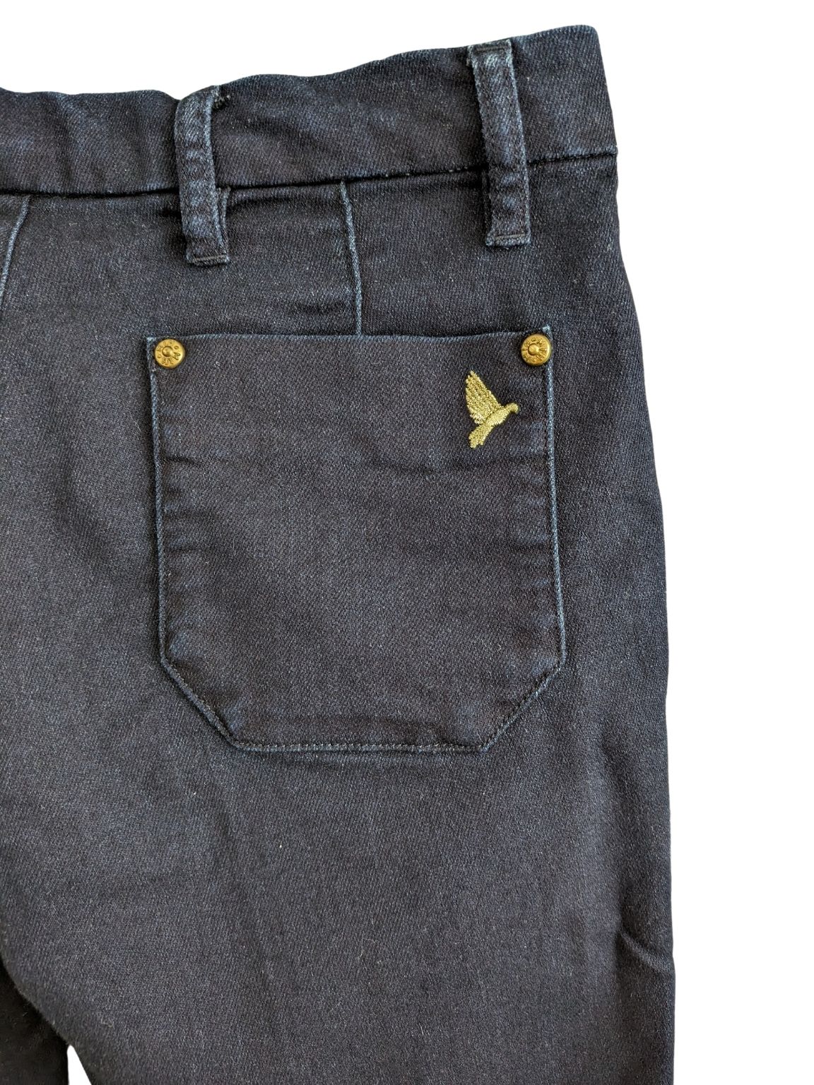 Traperice u stilu 70-ih, s nogavicama koje idu lagano u trapez, poznatog londonskog brenda M.i.h. Sastav: 100% pamuk Boje: tamno plava *Ove traperice dolaze sa posebnim uputama za pranje, koje se nalaze za unutrašnjoj strani džepova, a ujedno ih možete pronaći i na web stranicama ovog brenda. Preporuka je slušati ih :) |